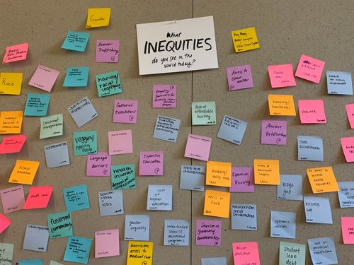 To pick my topic to answer the project brief, my UX/UI design class did a sticky note brainstorm session. We all wrote 5 answers to the question ”What inequalities do you see in the world today?”